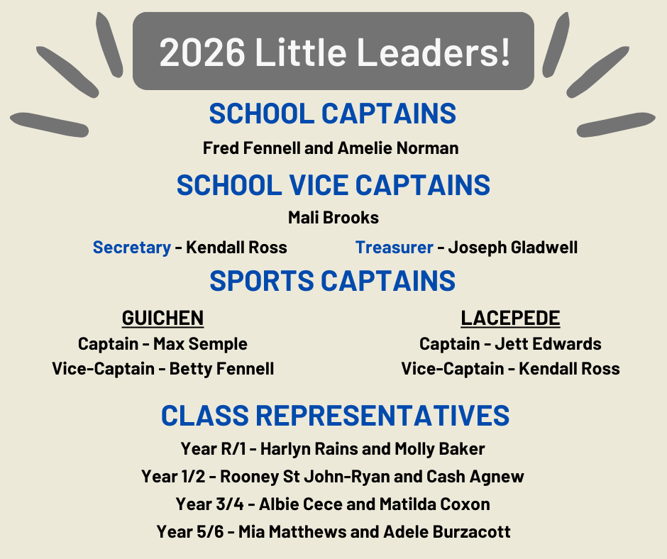 Little Leaders are our student representative council. Little Leaders attend regular meetings and are involved in whole school decision making.